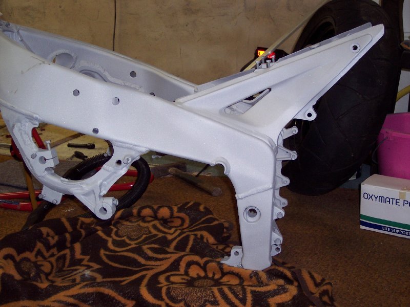 Tja so sieht ein polierter Rahmen aus, nachdem er "glasperlengestrahlt" wurde. Glatt wie ein Babyarsch übrigens.